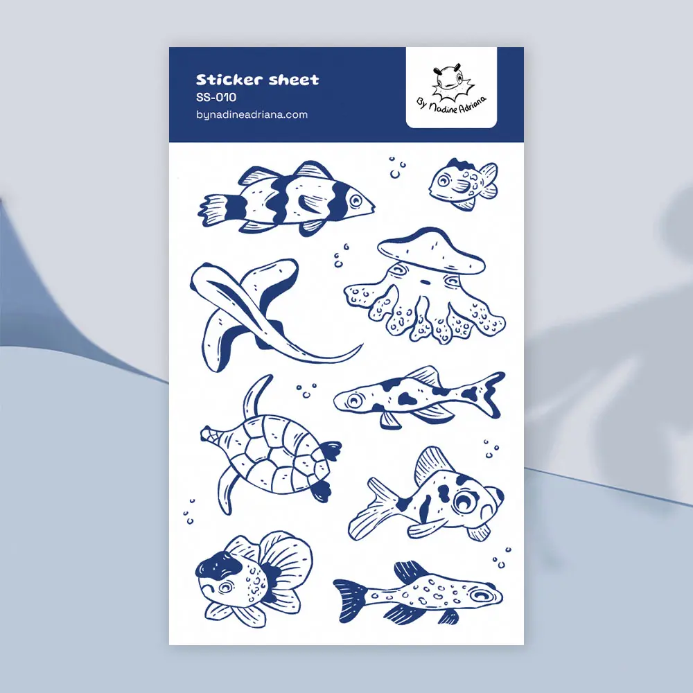 Decorate your planner, journal, notebook, or calendar with this kawaii grumpy fishes sticker sheet! Perfect for bullet journals, yearly planners, to-do lists, school spreads, crafting, and scrapbooking. Add humor and cuteness to your planner or notebook, making journaling, studying, and creative projects more fun. Each sheet contains funny and cute fish, making your planner, agenda, or notebook kawaii and cheerful.