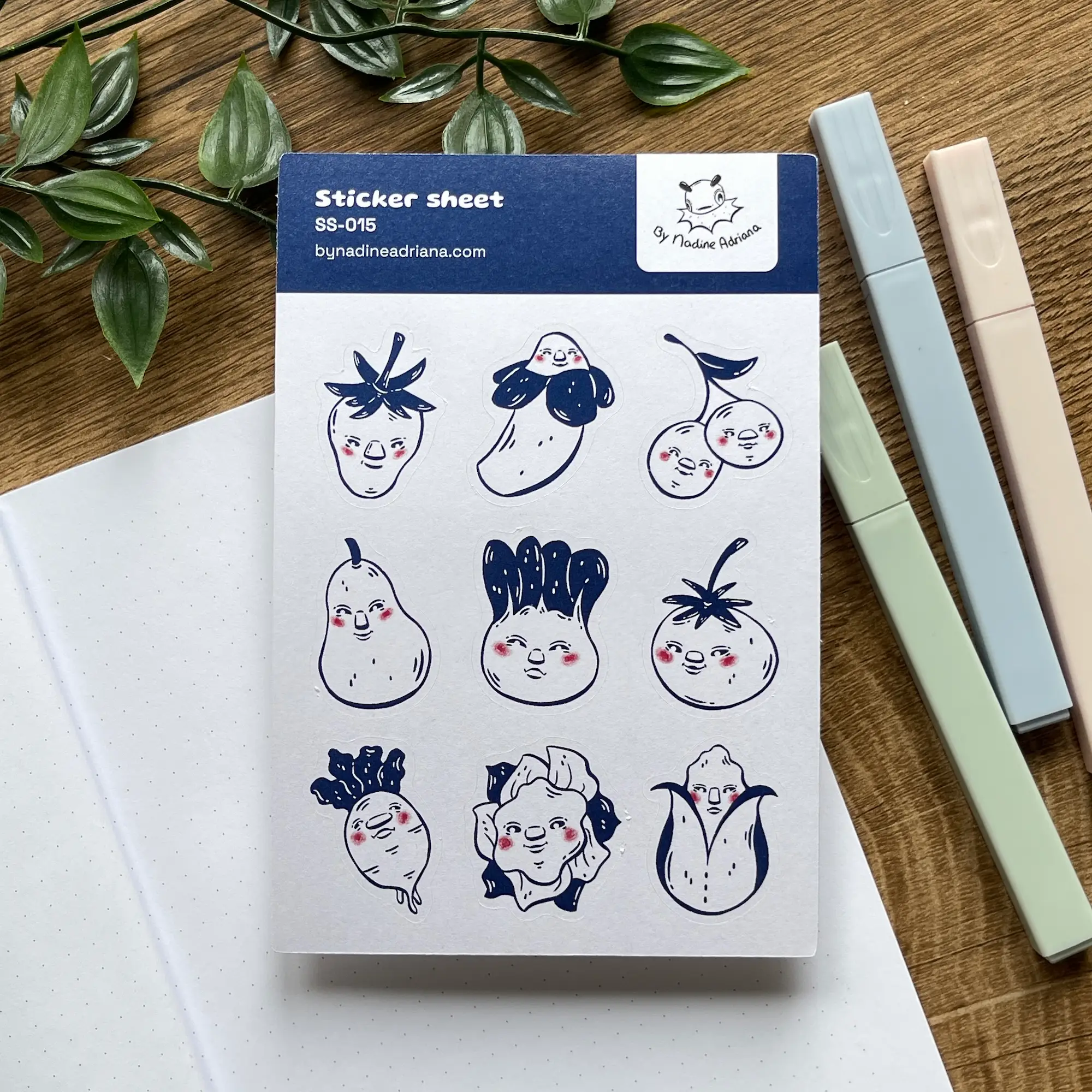 Decorate your planner, journal, notebook, or calendar with this kawaii vegetables fruit sticker sheet! Perfect for bullet journals, yearly planners, to-do lists, school spreads, crafting, and scrapbooking. Each sheet contains cute fruit and vegetables with faces and blushes, perfect for creative kawaii spreads. Make your planner, agenda, or notebook cheerful and inspiring while journaling, studying, or crafting.