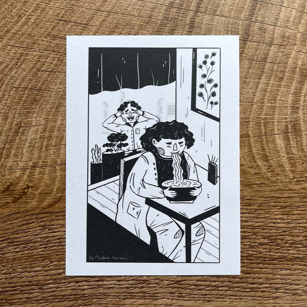This noodle mood postcard is a small but charming addition to any space! Display it with tape, pin it to your wall, or send it to a friend to brighten their day.